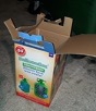 Kartong som slängts utan att ha plattats till Samma kartong 10 sekunder senare.