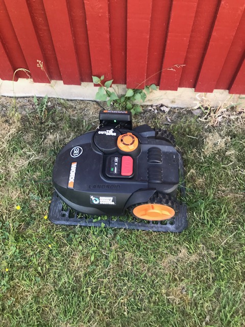 Birgitta MK, ordförande, har skänkt roboten till Gladiolens samfällighetsförening för att användas runt vår gemensamhetslokal.