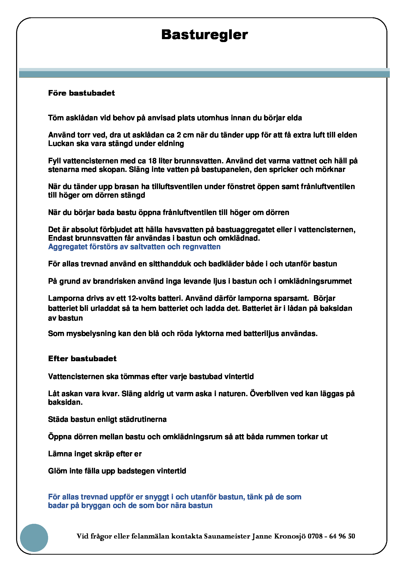 Städrutiner för bastun samt basturegler finns nu tillgängligt