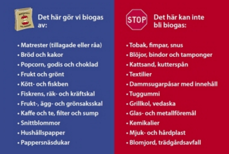 Observera att bara vissa saker kan läggas i påsar i de bruna kärlen: