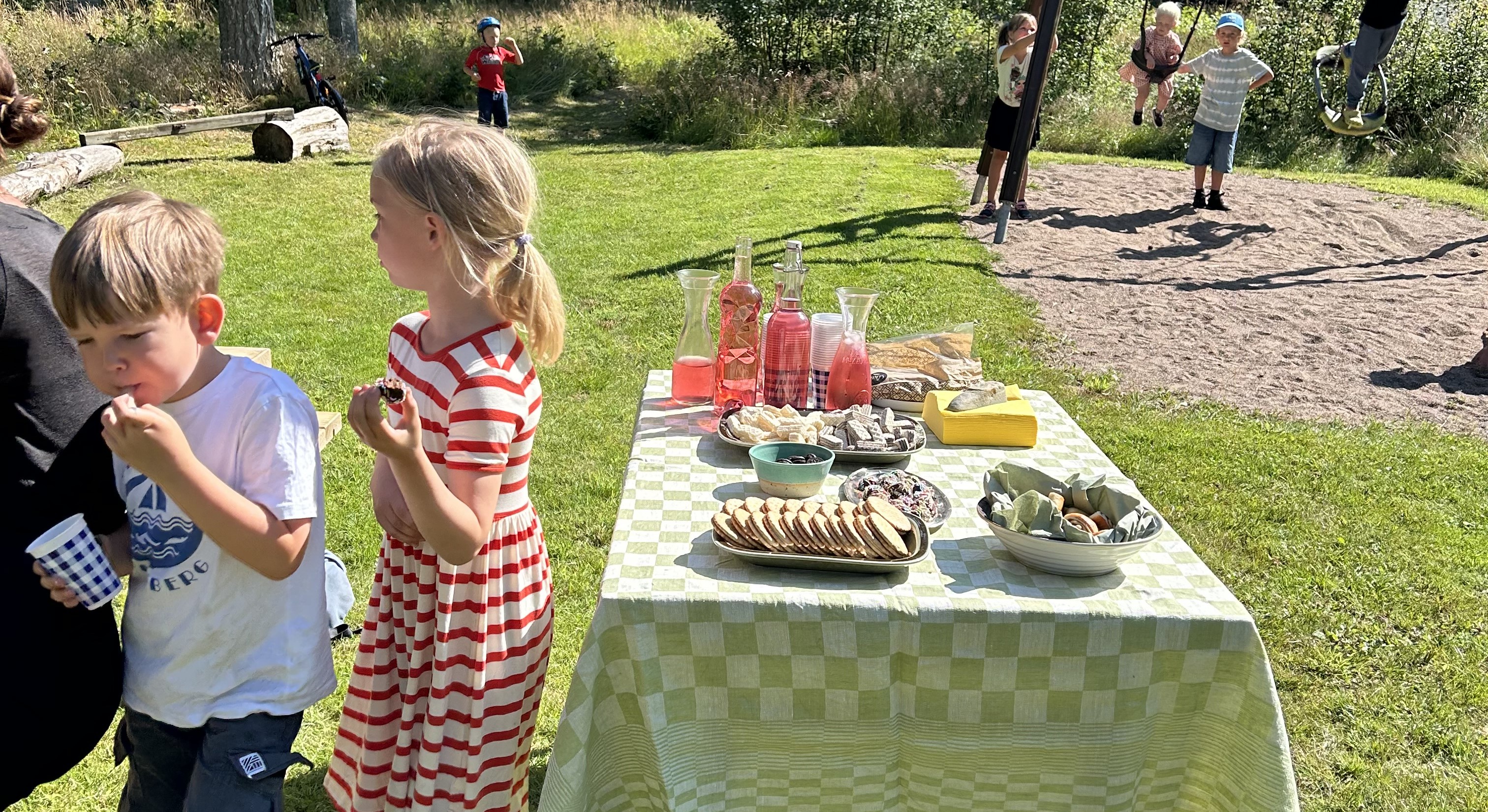 Den 25/7 hade vi invigning av vår nya lekplats. Invigningen fick skjutas upp ett par veckor då vi hade vädrets makter emot oss. När vi äntligen kunde bjuda in till invigningskalas sken solen och uppslutningen var god. Tack alla som deltog på festligheterna och ett stort tack till alla er som har jobbat med att färdigställa vår fina lekplats!