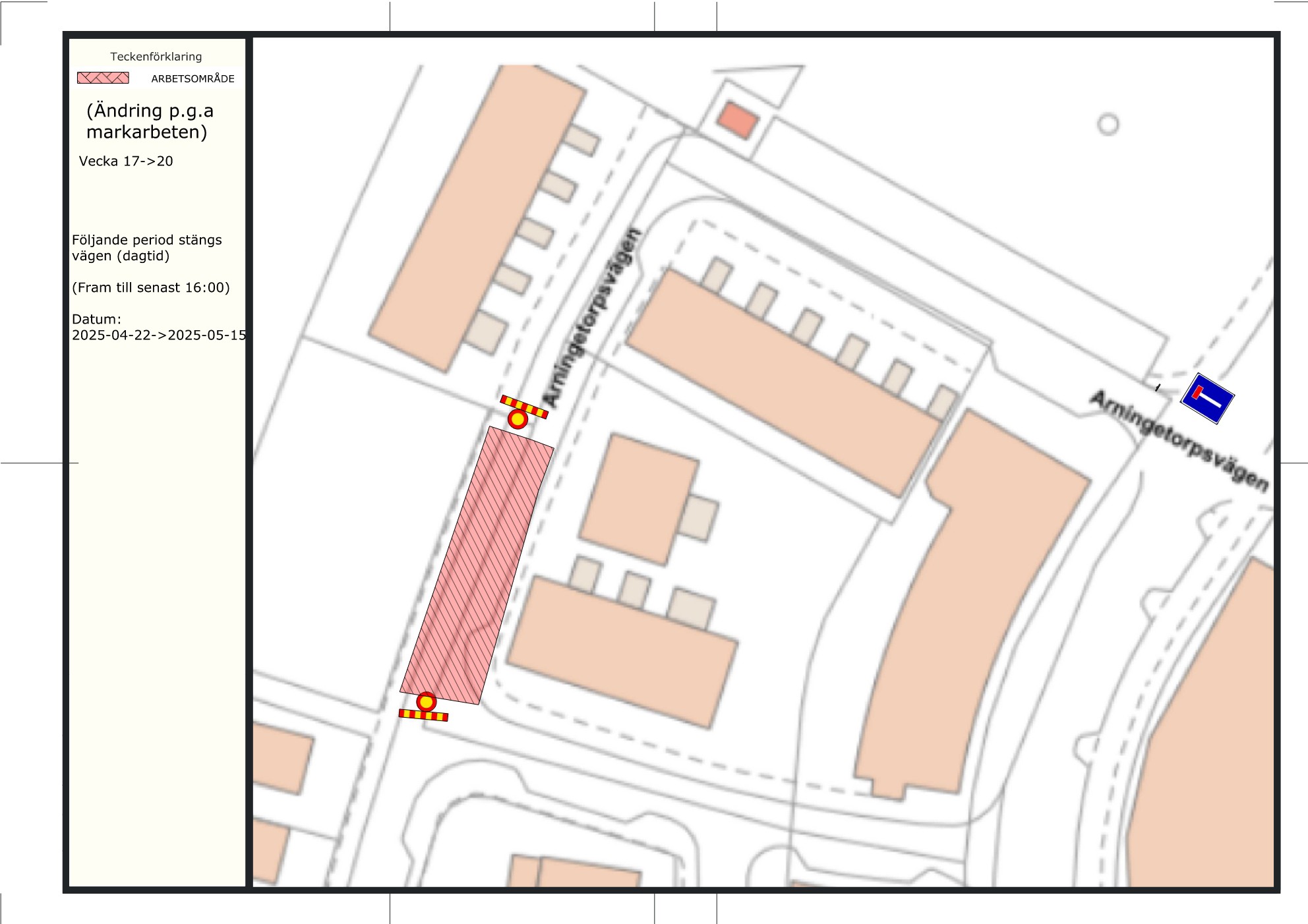 På grund av markarbeten kommer sträckan nedan längs arningetorpsvägen vara avstängd dagtid till och med 2025-05-15.