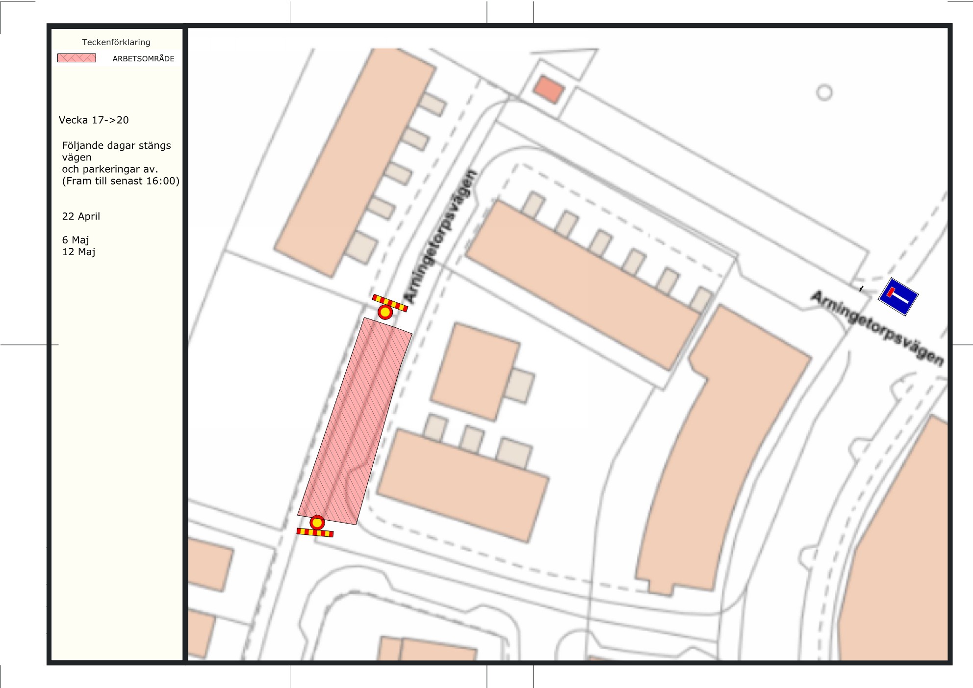Översikt kommande vägavstängningar intill OBOS arbetsområde