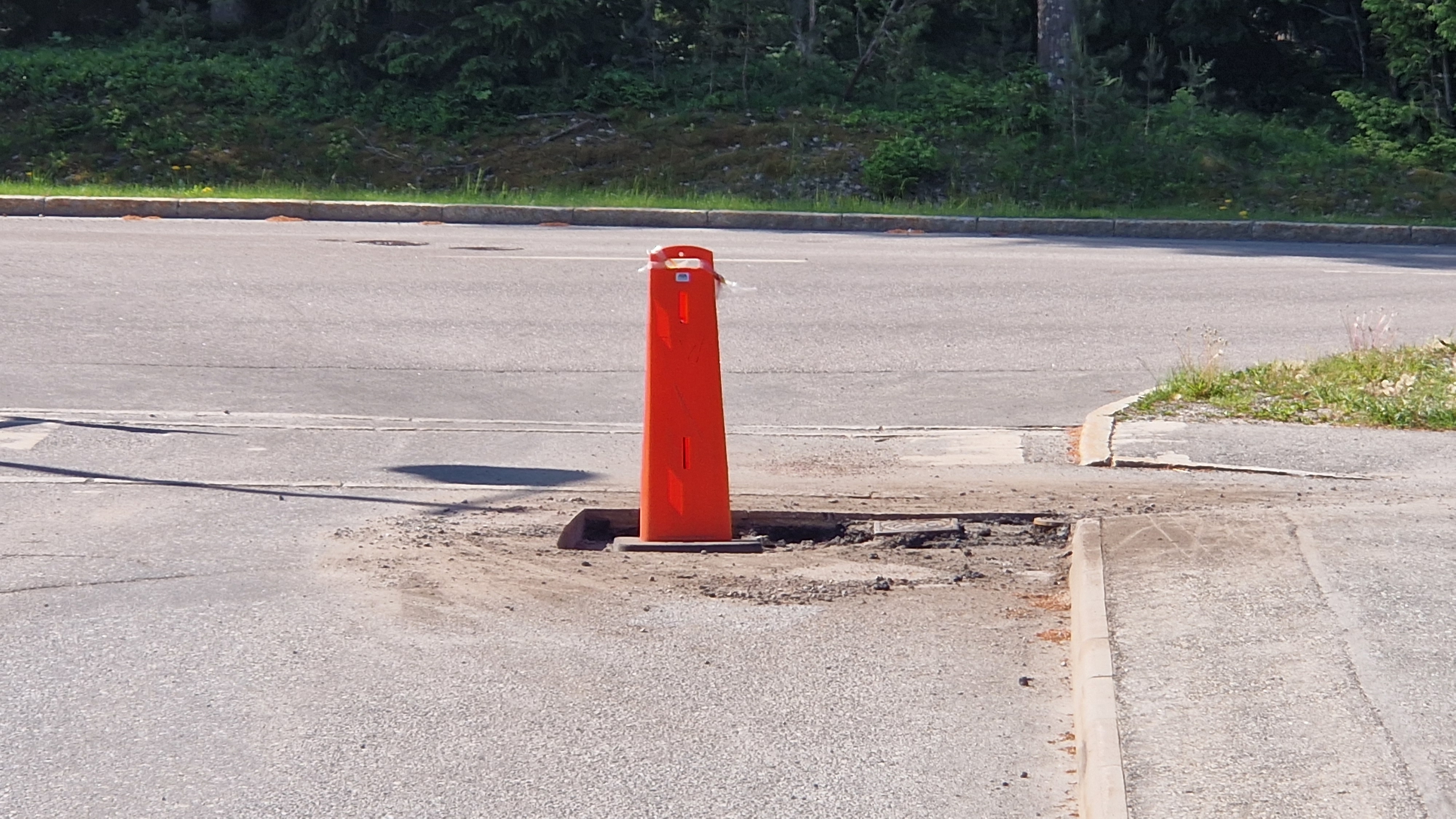 Reparation av vägskada i korsningen Ekebyvägen Koltrastvägen.