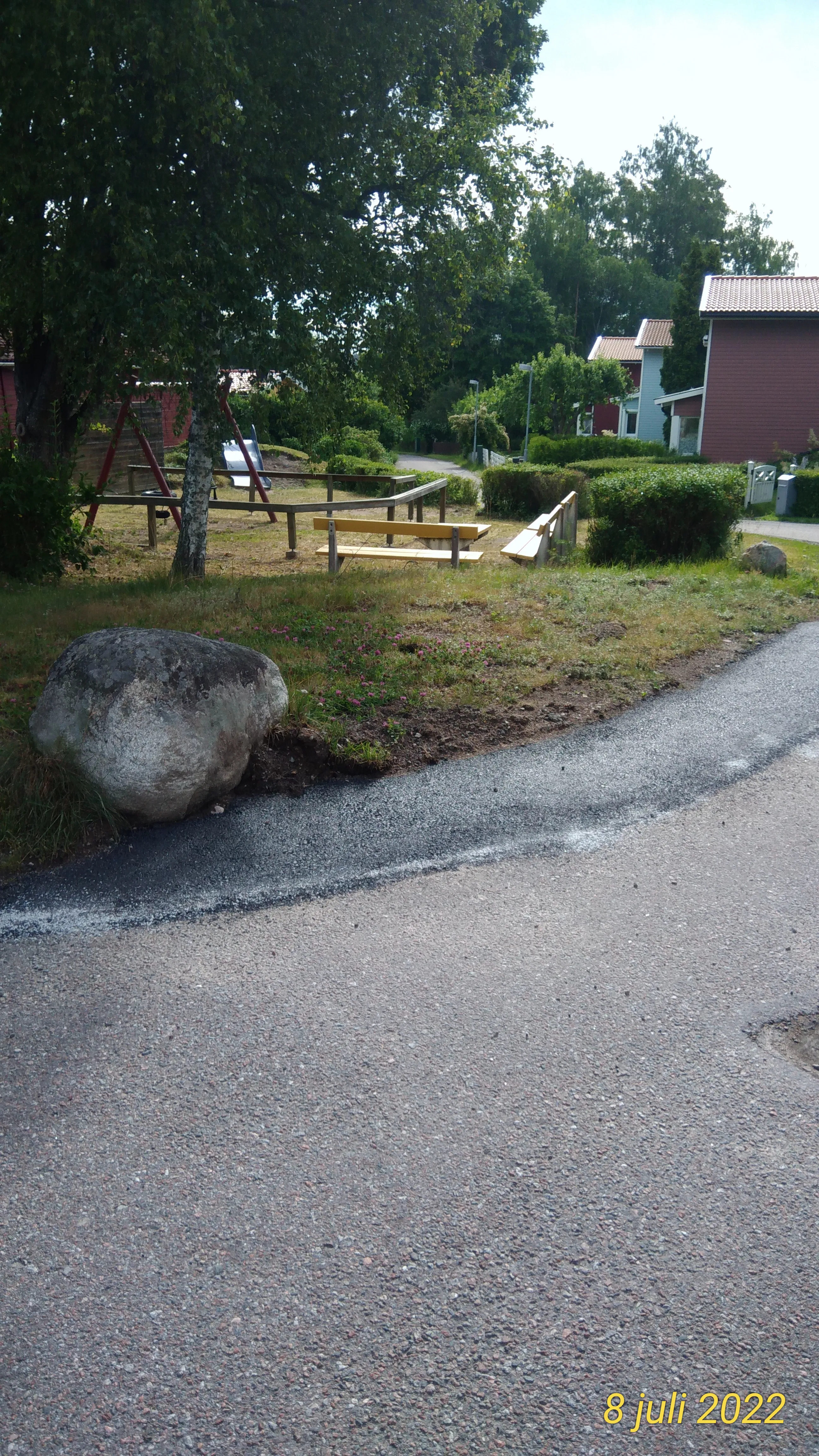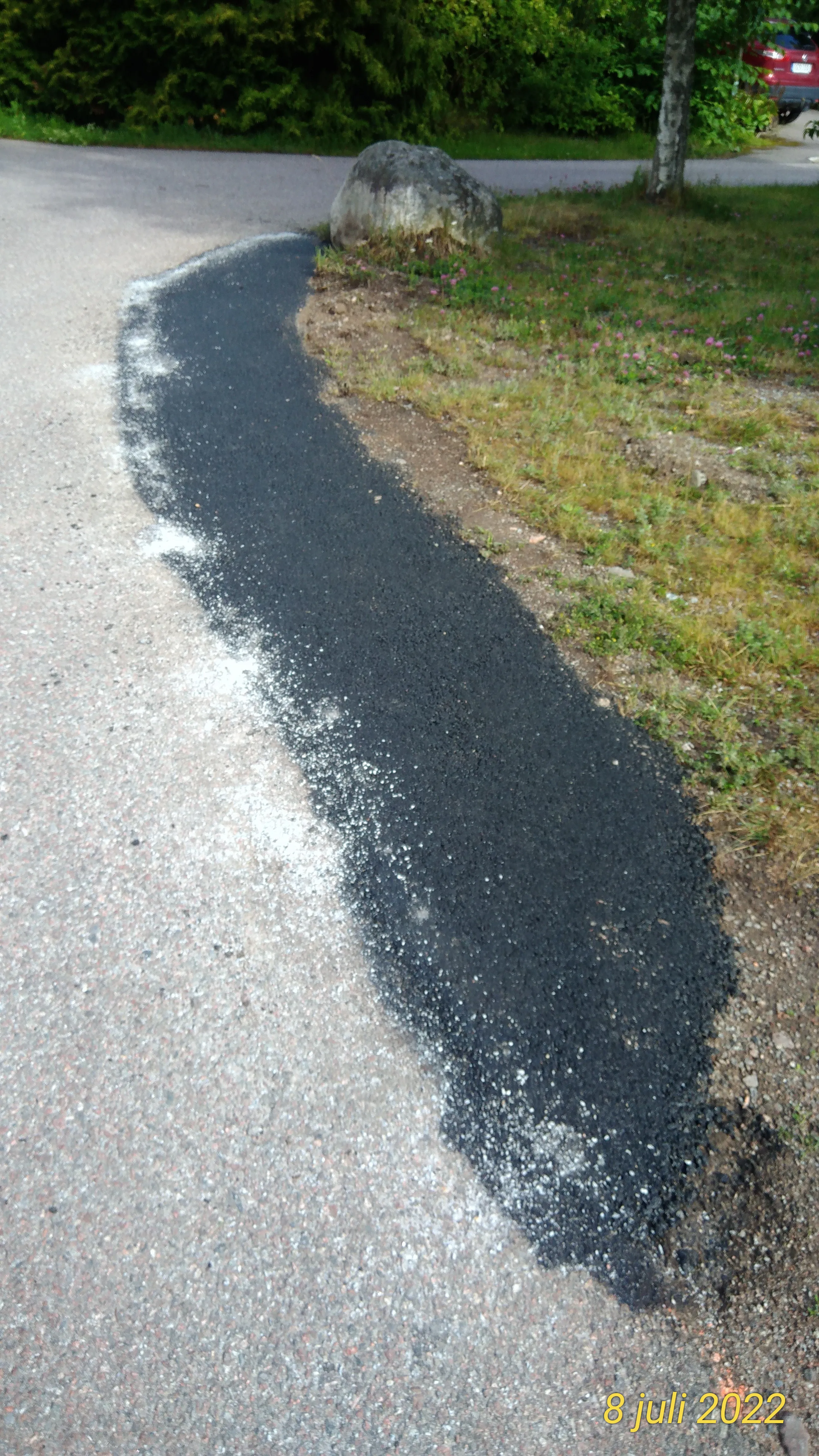 Tänkte uppdaterar er om att kommunen har varit och asfalterat utanför Solgatan 24 nu i veckan. Sopbilen har svårt att ta svängen in i området vid tömning av sopkärl. För att inte riskera köra sönder marken ännu mera så att det blir ett djupare hål, föreslogs att det är bästa att asfaltera.