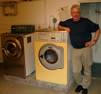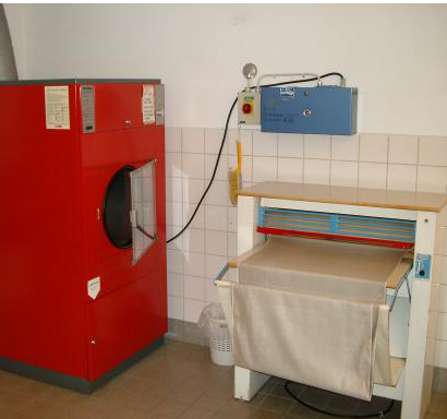 Två tvättstugor med större kapacitet än du normalt har hemma finns i källaren vid panncentralen. I varje tvättstuga finns två tvättmaskiner med myntinkast (kapacitet 7 kg torr tvätt vardera). Dessutom finns där ett strykjärn och en mangel. I ena tvättstugan finns också en 7 kg torktumlare, medan det finns ett torkskåp i den andra. Det är gratis centrifugering i de gula tvättmaskinerna.