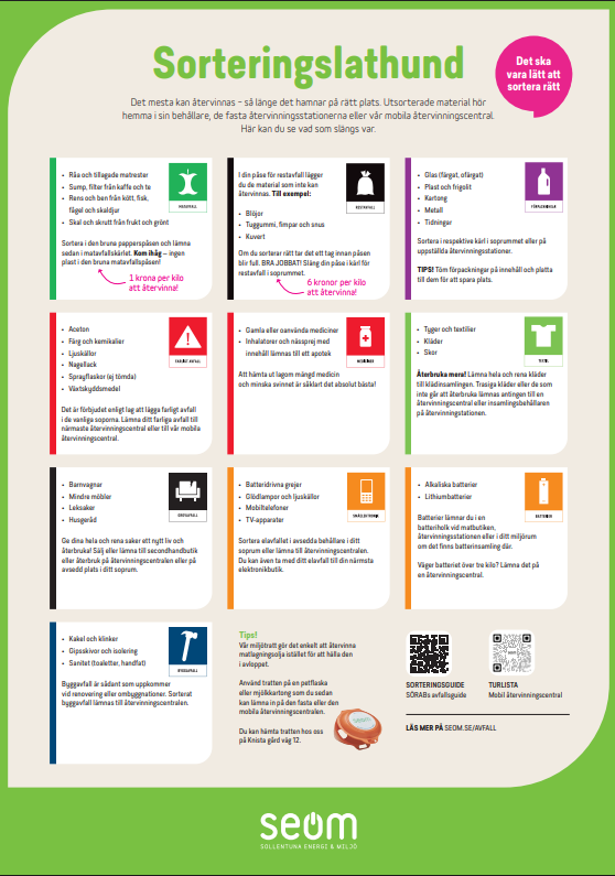 Detaljer kring hur man ska sortera i våra miljöhus se bild -