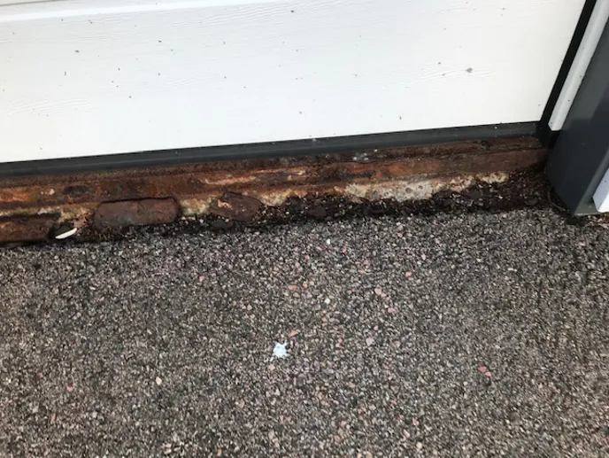 Det är djupa spår och gropar och det är nödvändigt att göra något åt dem. I förra veckan kom en representant för för en firma som sysslar med bland betongarbeten på besök och inspekterade skadorna. De ska återkomma med förslag på åtgärder och kostnaderna för detta. Även trösklarna har i de flesta fall stora rostangrepp. De fyller heller inte längre någon funktion sedan vi fick de nya portarna.